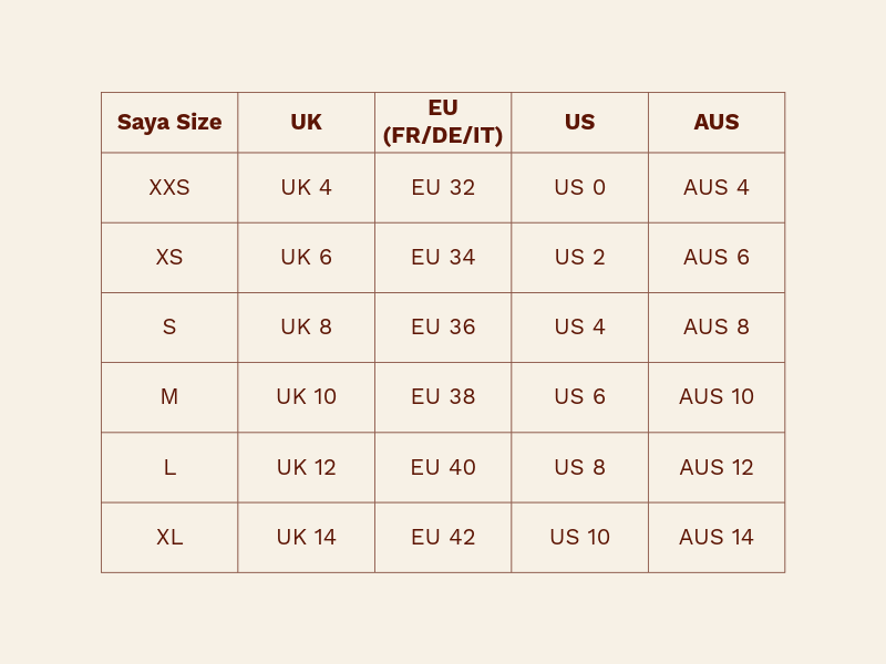Our sizing follows standard international swimwear measurements. Our seamless, four-way stretch fabric offers a flexible, forgiving fit - perfect if you’re between sizes or unsure.